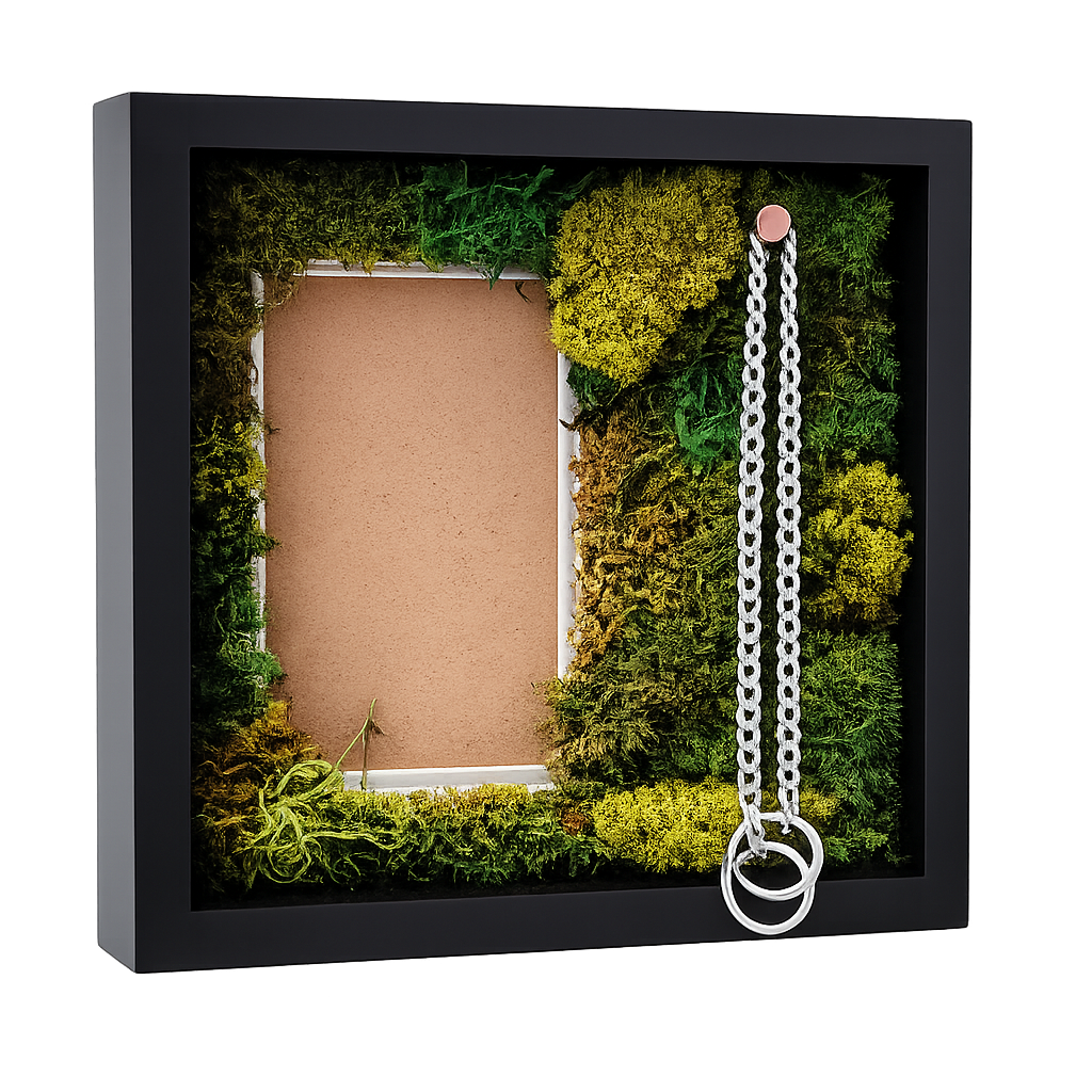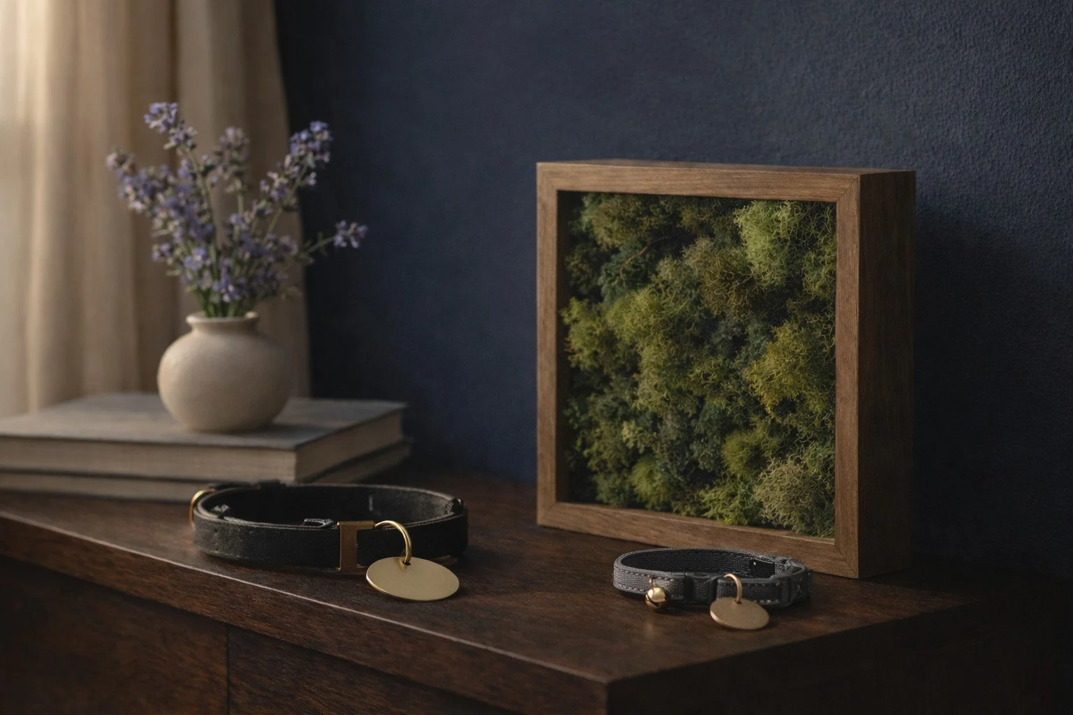 Roots & Whiskers was created as a gentle place to hold memory, for the animals who walk beside us through life. Each piece is handcrafted using preserved moss and natural materials, honoring the quiet, lasting bond between people and their pets, the walks taken together, the time spent outdoors, and the love carried home.