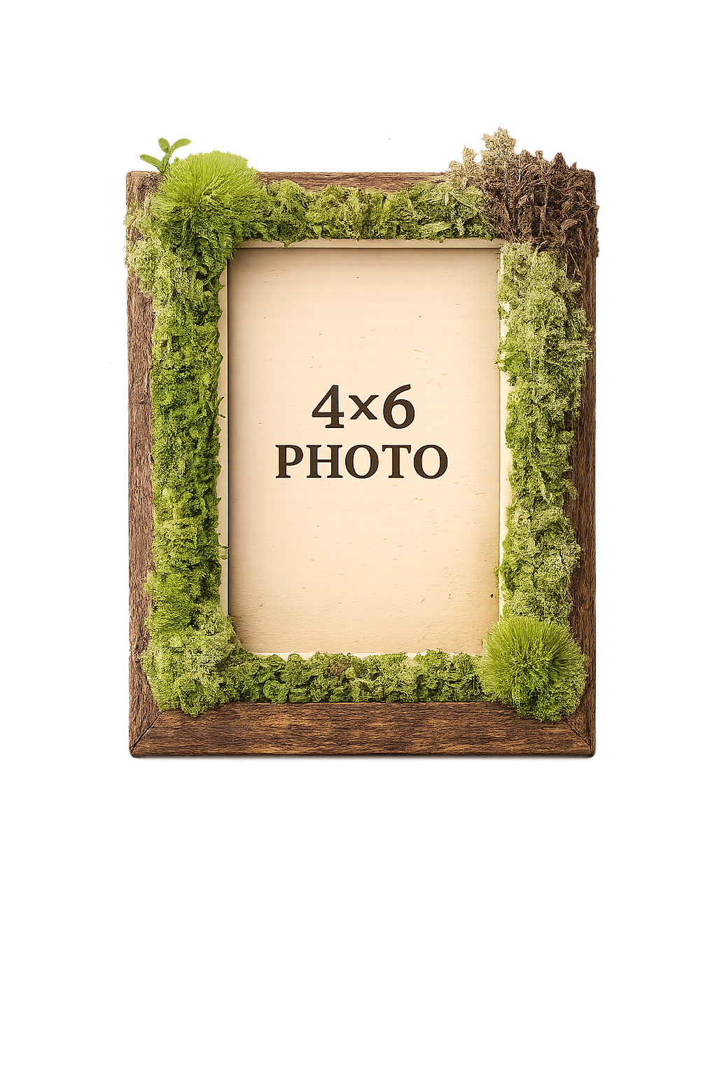 Celebrate the bond you share with a beloved pet, whether you’re honoring their memory or cherishing them in the present. Designed to hold a 4×6 photograph, each handcrafted moss frame offers a meaningful way to display a favorite moment and keep that connection close.